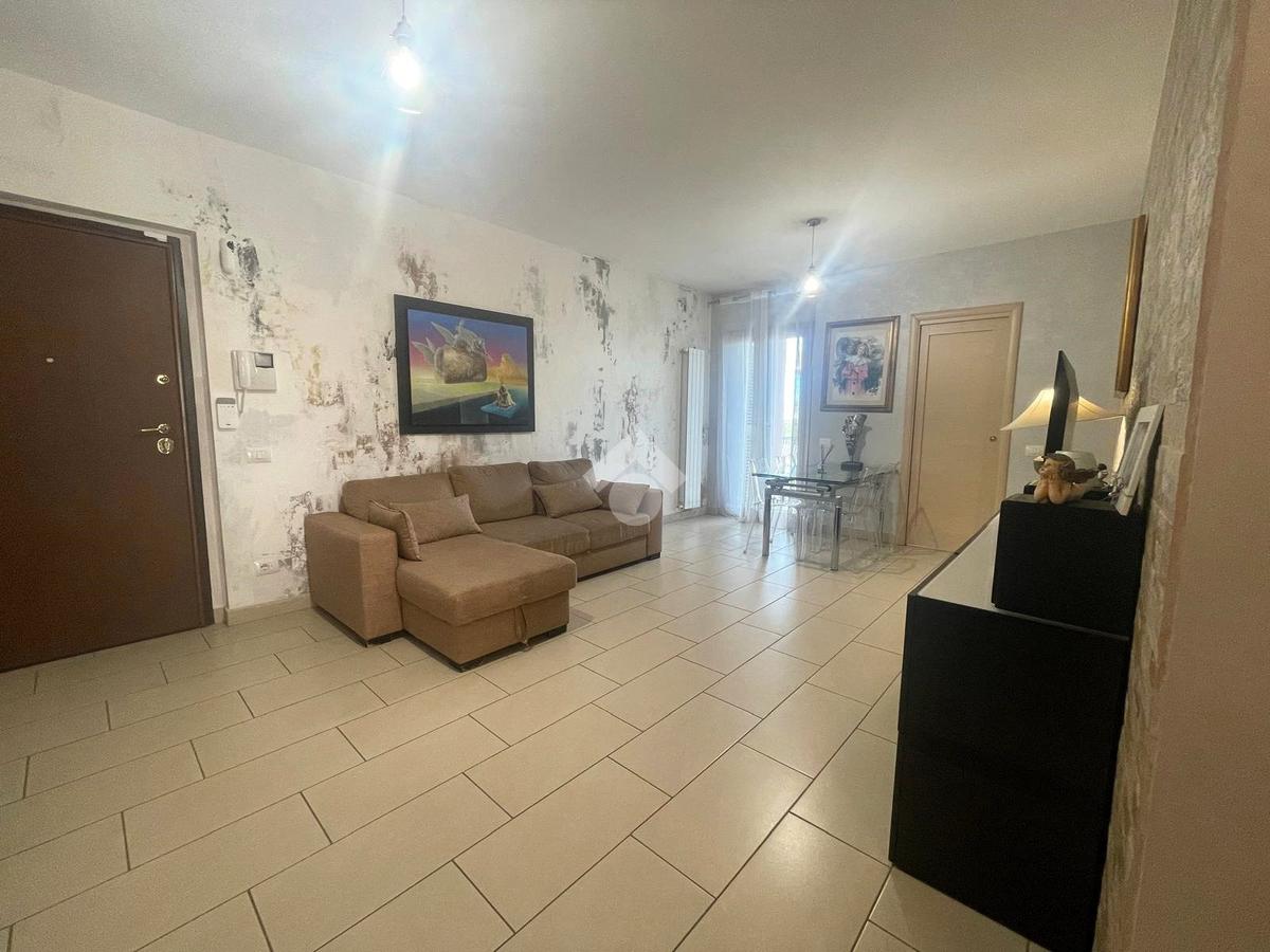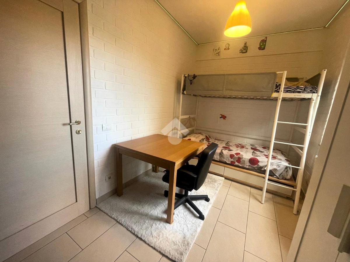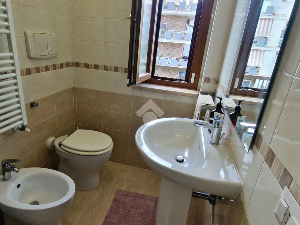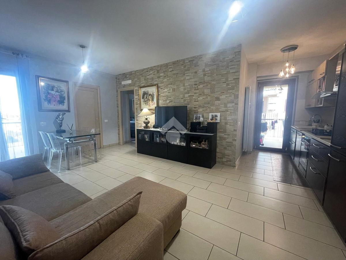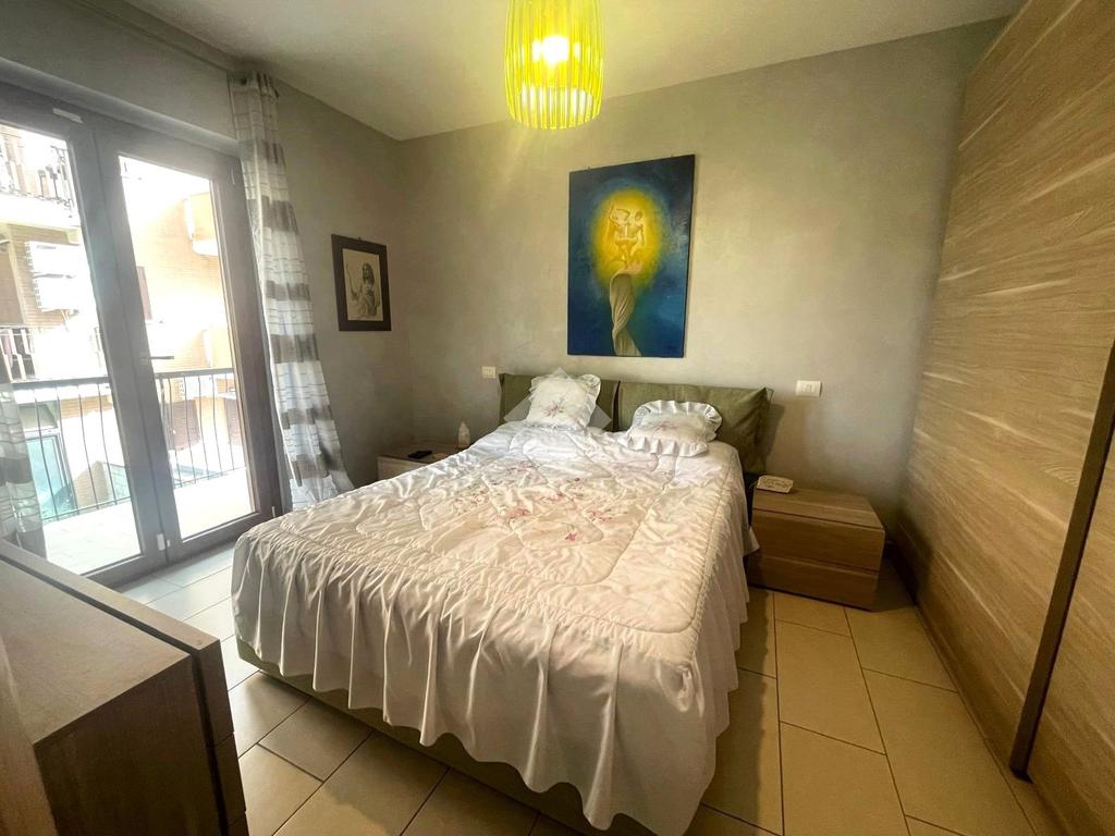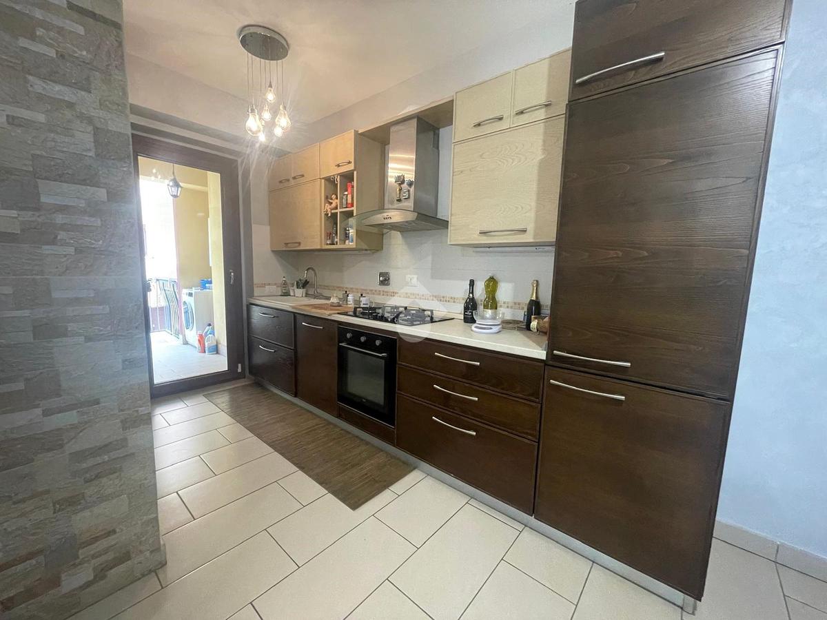 La soluzione è cosi composta: ampio soggiorno con accesso diretto al balcone, angolo cottura separato con affaccio su secondo balcone, disimpegno, camera matrimoniale, cameretta, due bagni finestrati.