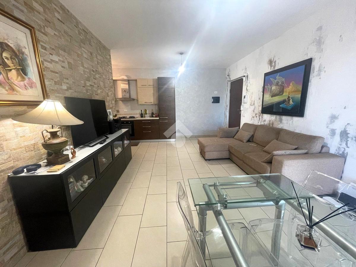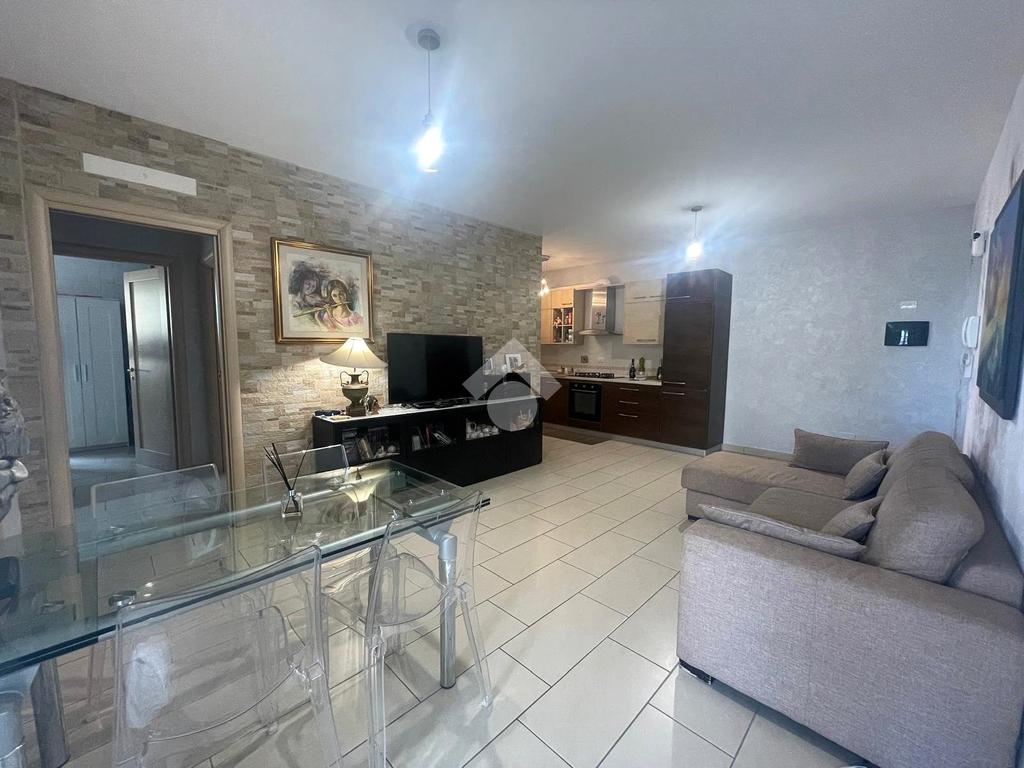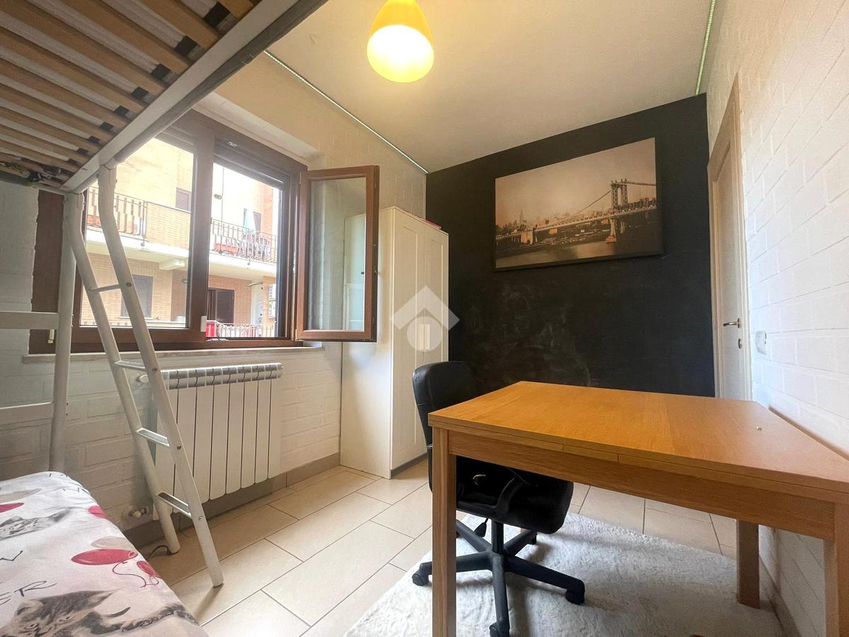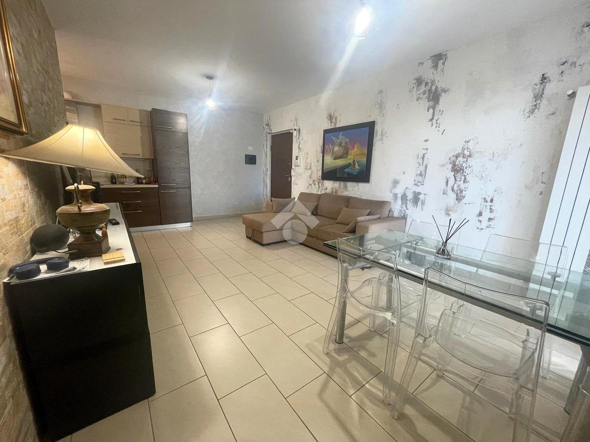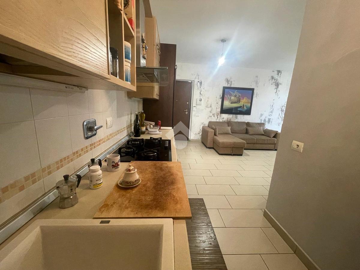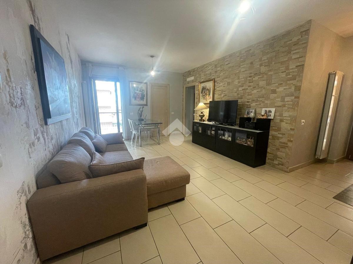 La soluzione è cosi composta: ampio soggiorno con accesso diretto al balcone, angolo cottura separato con affaccio su secondo balcone, disimpegno, camera matrimoniale, cameretta, due bagni finestrati.