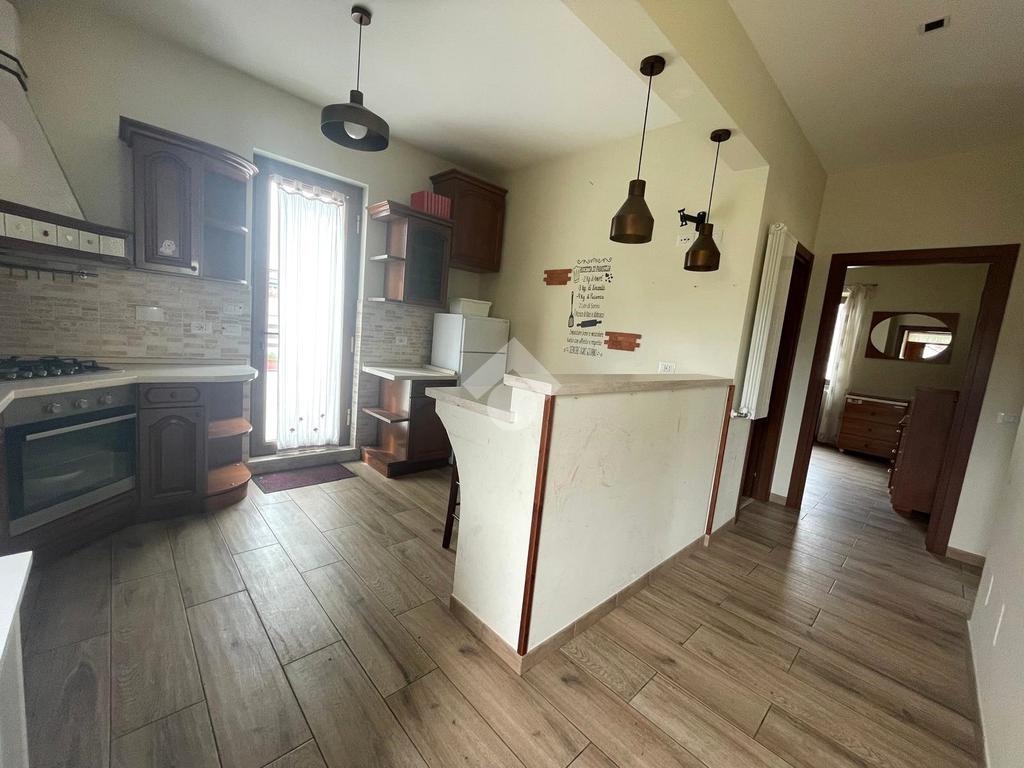 La soluzione abitativa comprende: luminoso salone, cucina abitabile con uscita esterna su terrazzo panoramico, perfetto per pranzi e cene all’aperto, disimpegno che conduce alla zona notte composta da: due ampie camere da letto, di cui una dotata di cabina armadio, l’altra con affaccio diretto su balcone, bagno finestrato con box doccia.