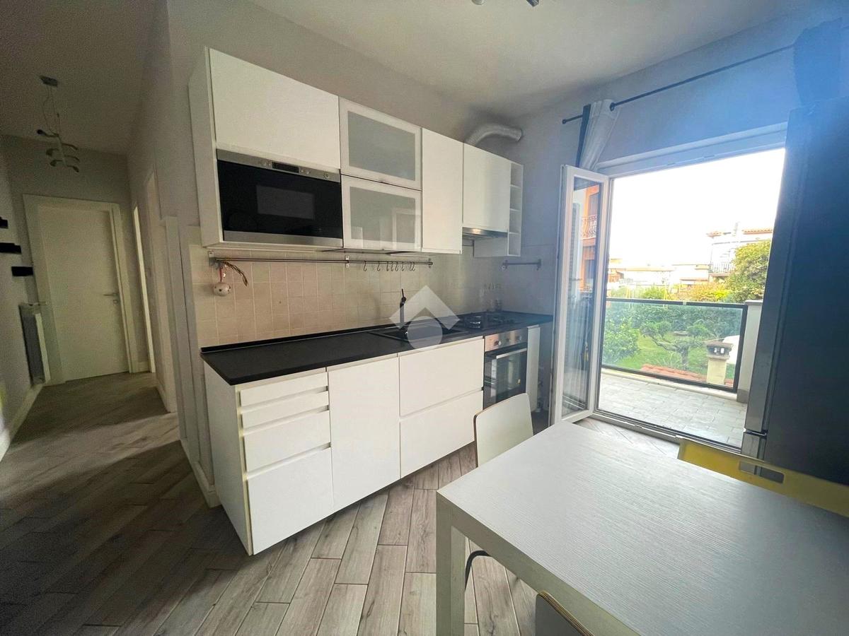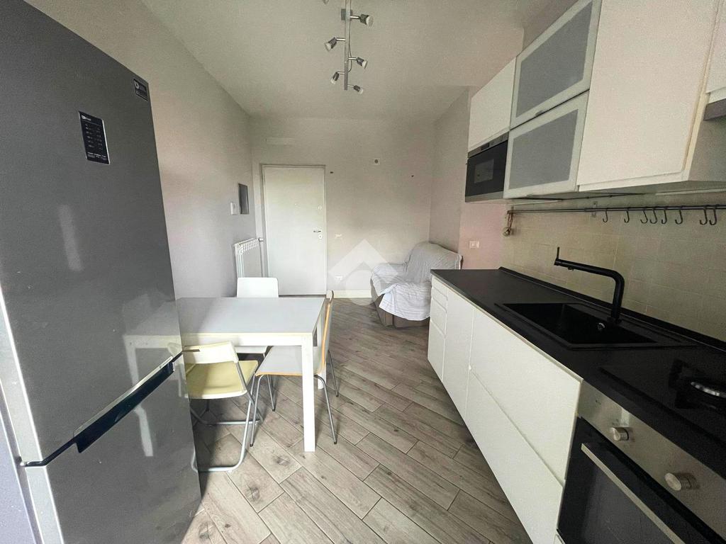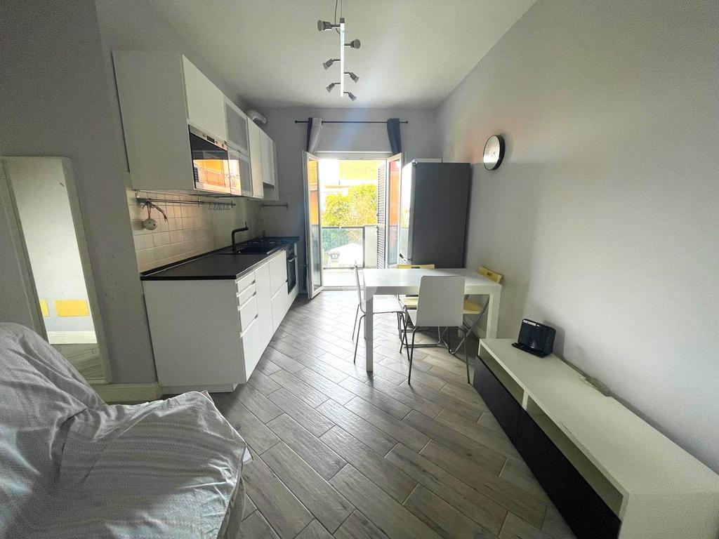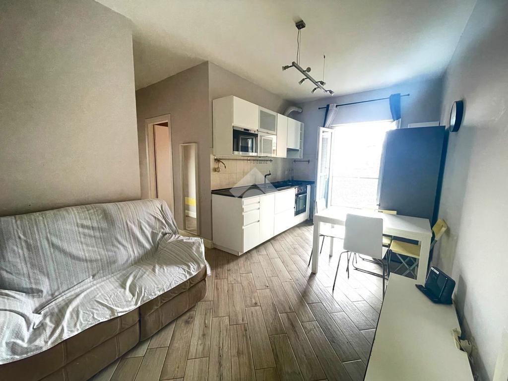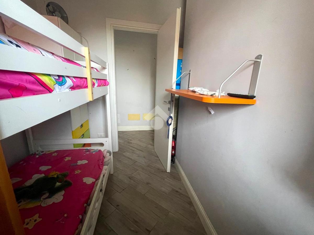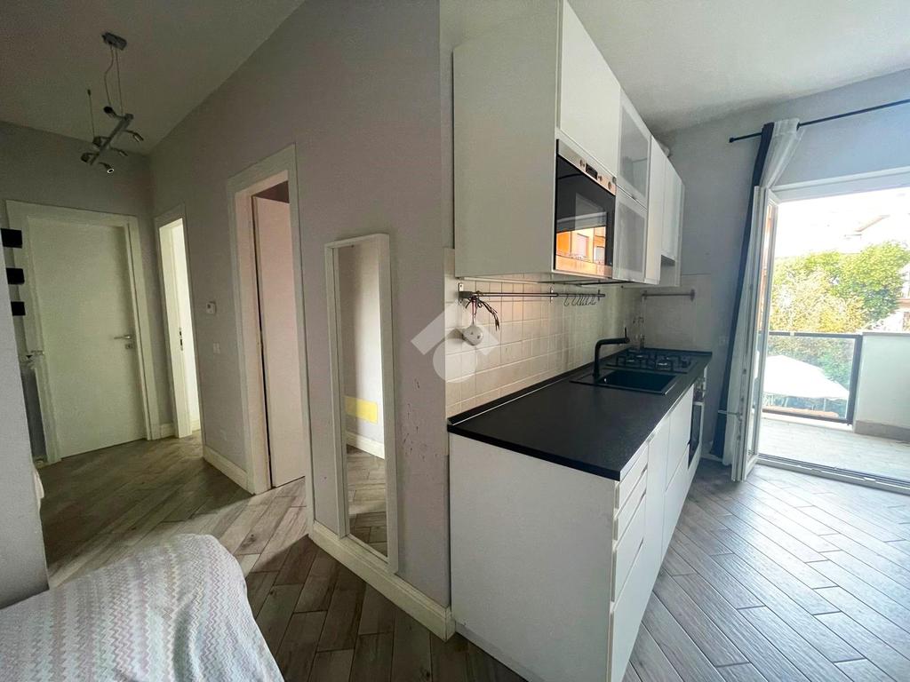 La soluzione si apre su un soggiorno con angolo cottura e con accesso diretto al balcone, ideale per momenti di relax all'aperto. A seguire un disimpegno conduce alla zona notte dove troviamo una cameretta, una camera matrimoniale e un bagno finestrato dotato di box doccia.
