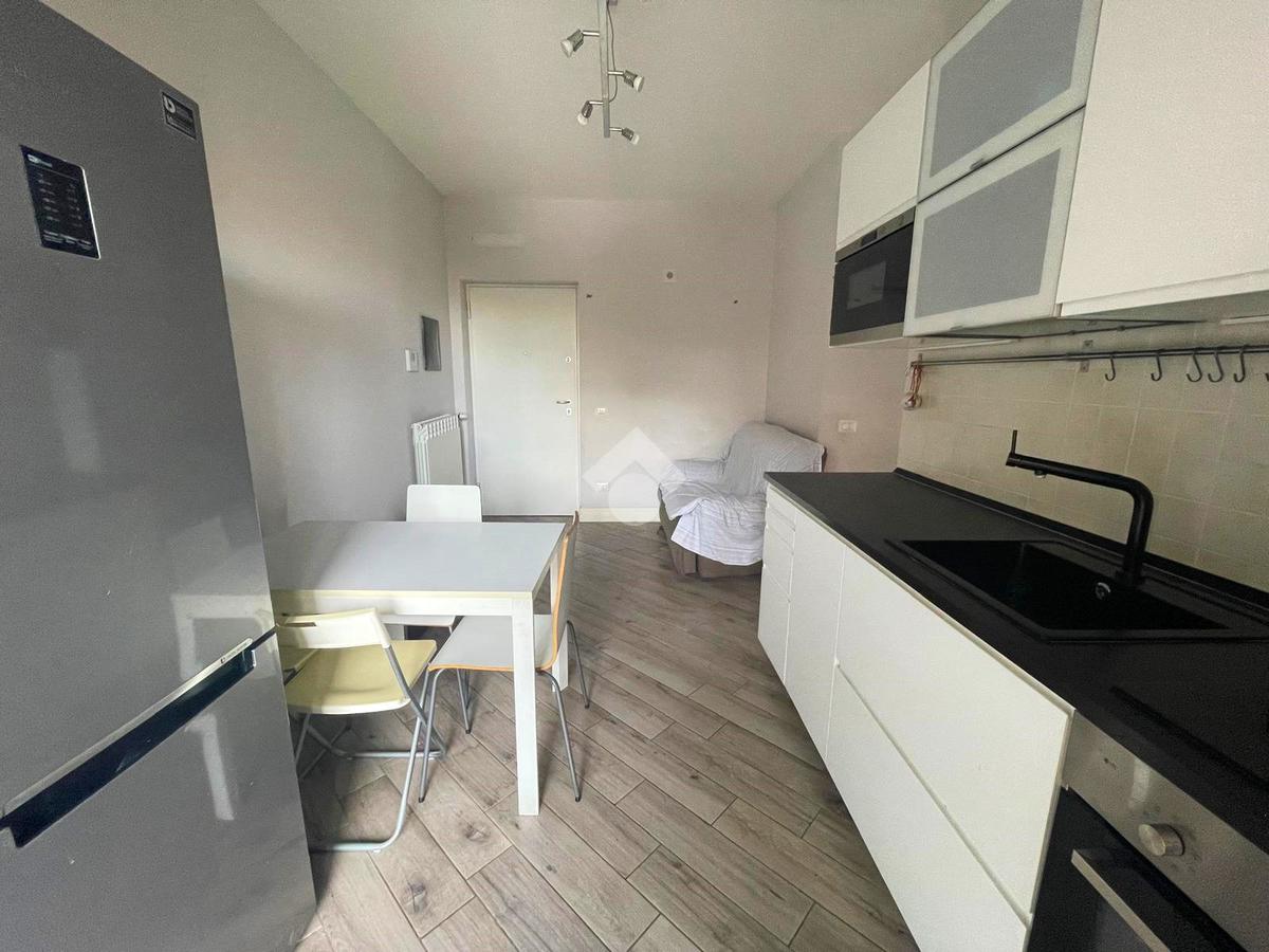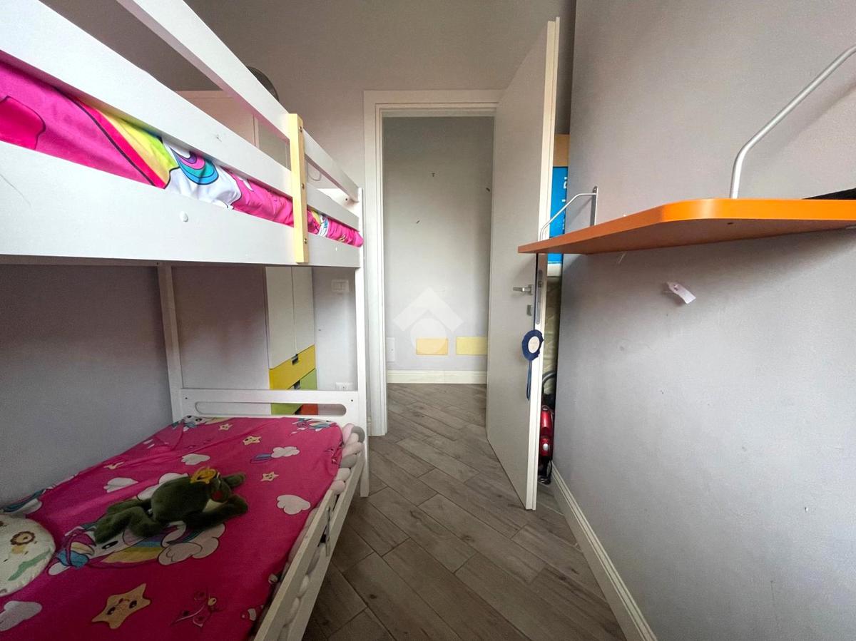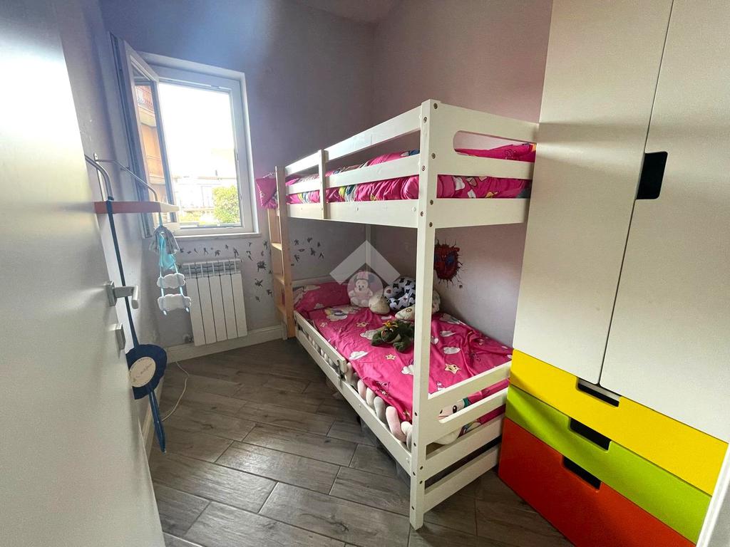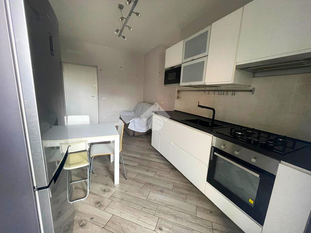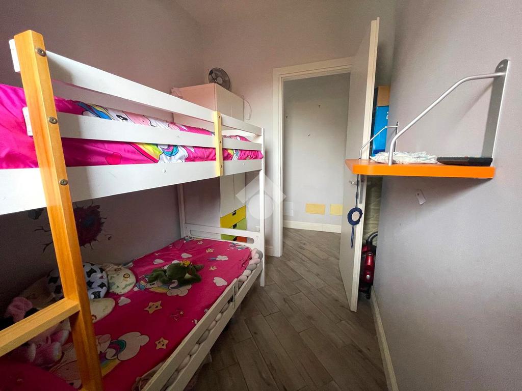 La soluzione si apre su un soggiorno con angolo cottura e con accesso diretto al balcone, ideale per momenti di relax all'aperto. A seguire un disimpegno conduce alla zona notte dove troviamo una cameretta, una camera matrimoniale e un bagno finestrato dotato di box doccia.