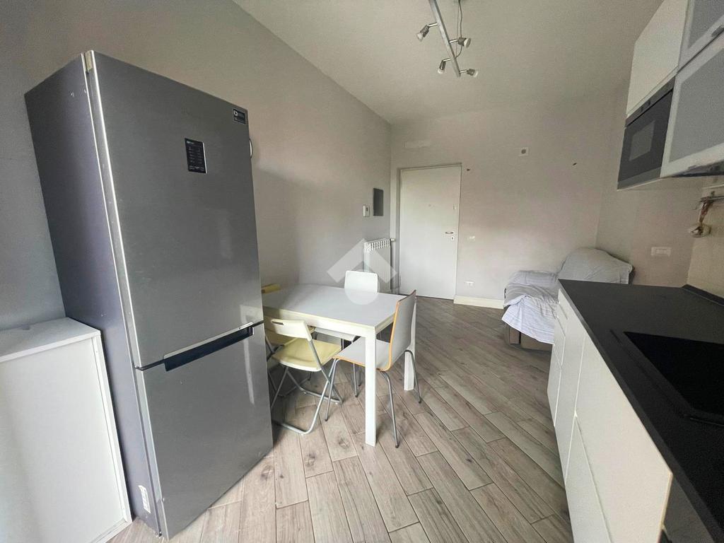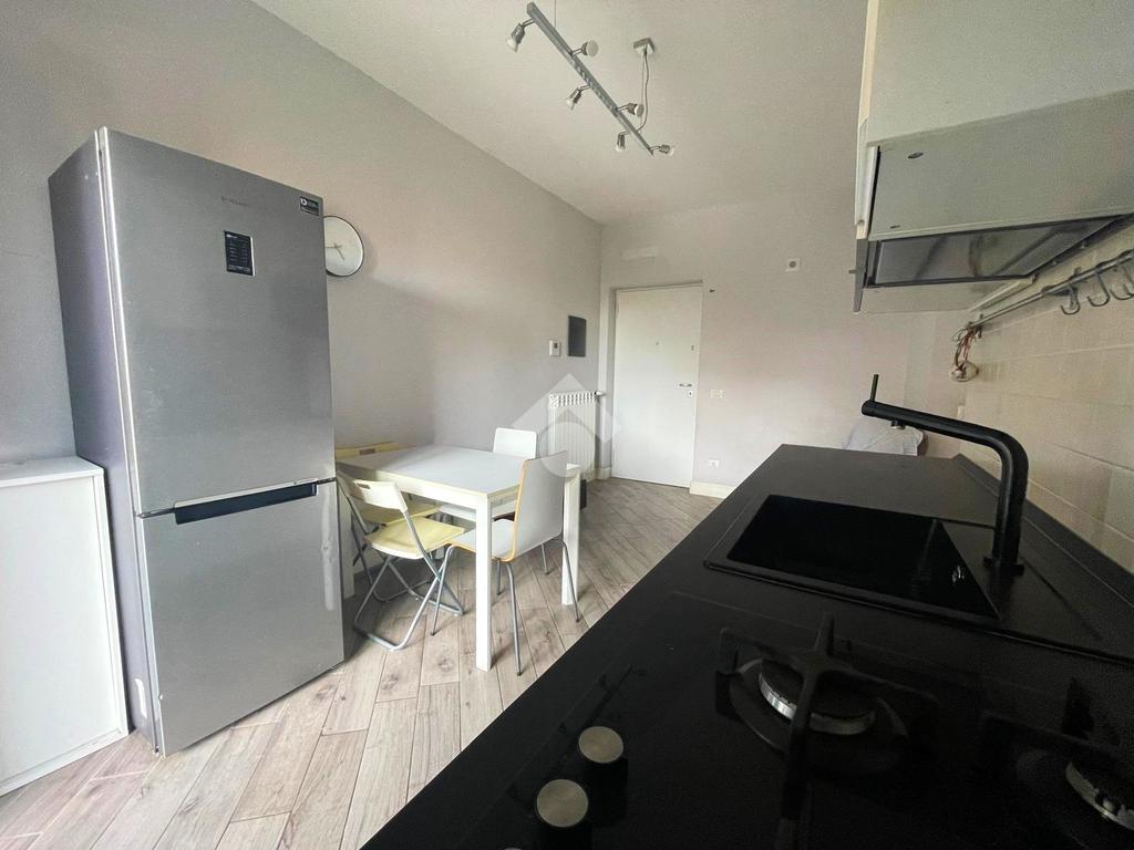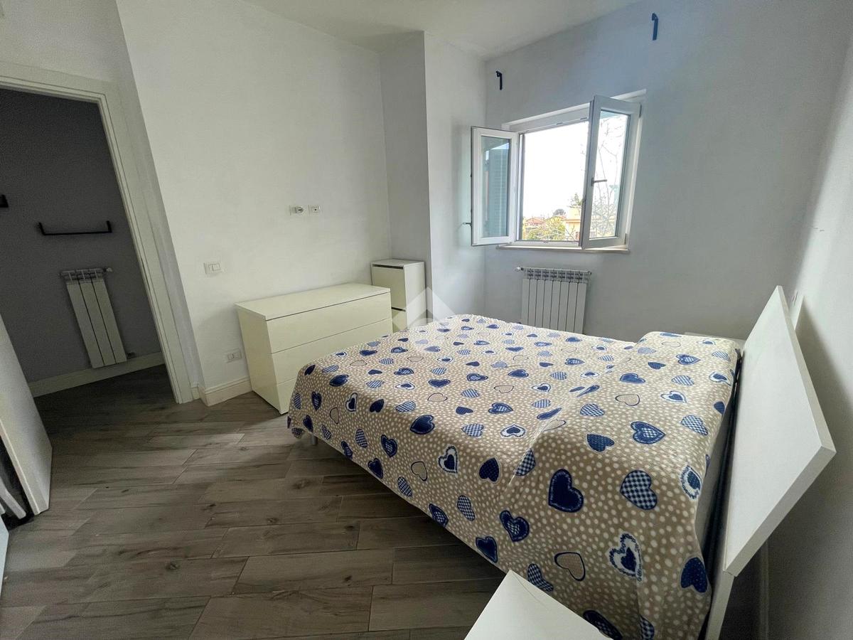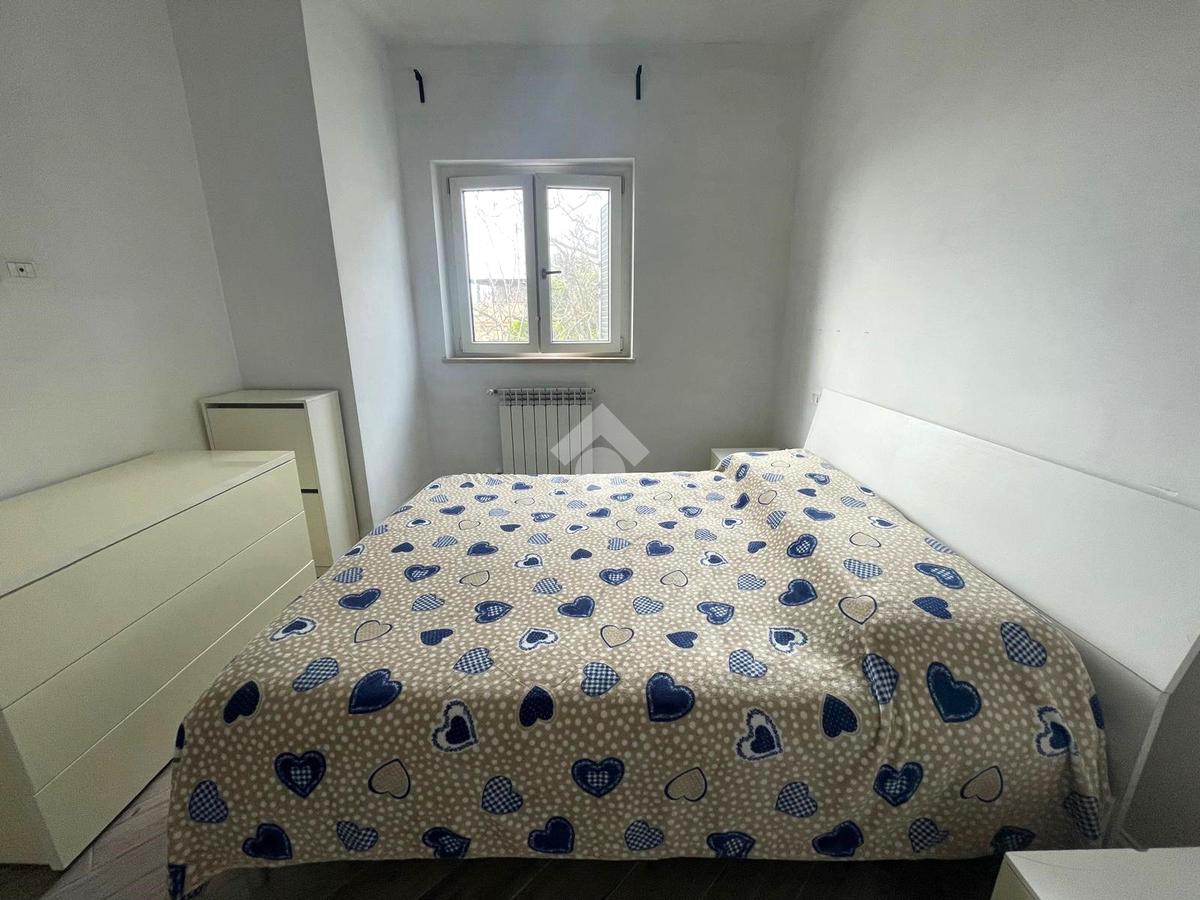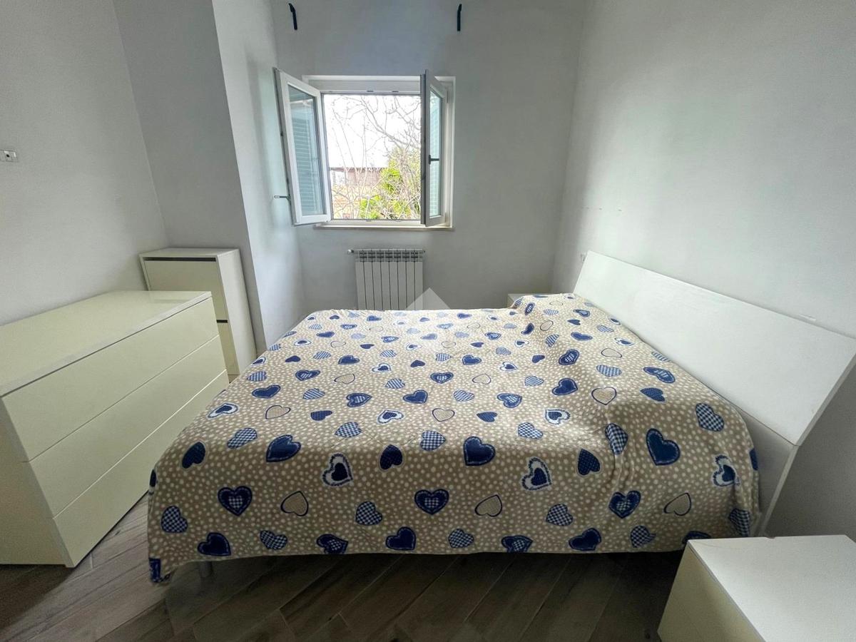 La soluzione si apre su un soggiorno con angolo cottura e con accesso diretto al balcone, ideale per momenti di relax all'aperto. A seguire un disimpegno conduce alla zona notte dove troviamo una cameretta, una camera matrimoniale e un bagno finestrato dotato di box doccia.