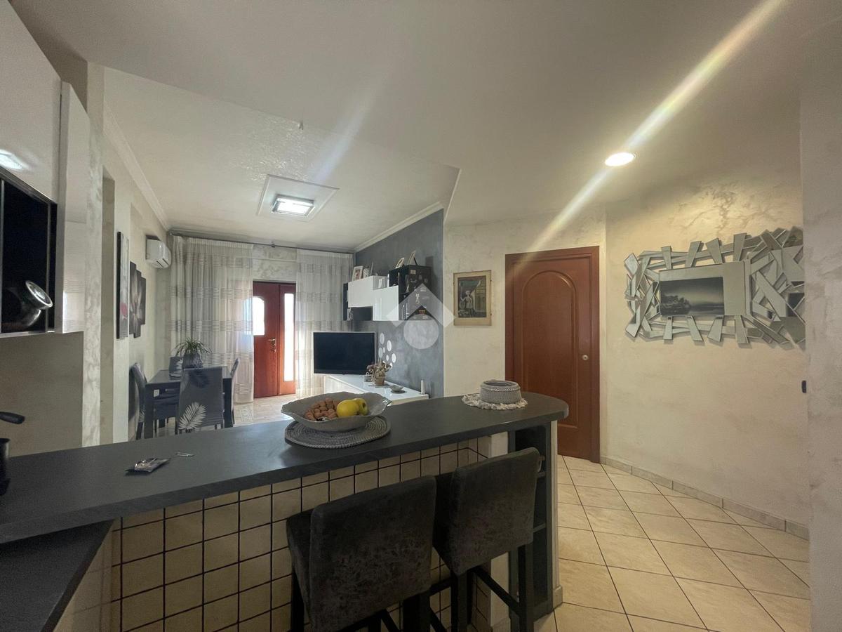 L' appartamento è composto da tre locali ben distribuiti e si compone di salone con angolo cottura, due bagni di cui uno dotato di vasca e l'altro con box doccia. Dal corridoio si giunge alla zona notte che comprende due camere matrimoniali, entrambe con accesso diretto al balcone, garantendo luminosità e continuità tra gli spazi. Possibilità di ricavare una terza cameretta.