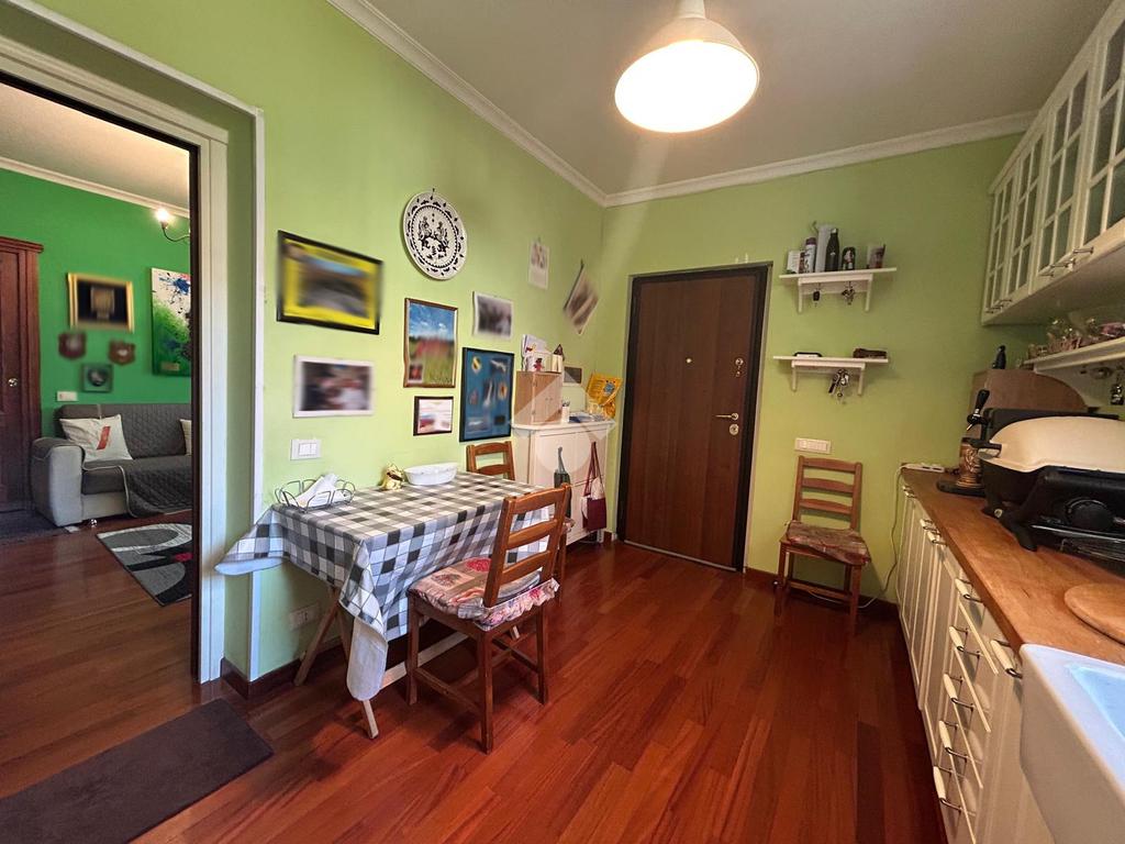 L'immobile si apre su una zona giorno composta da cucina e soggiorno; queste ultime sono separate e ben distribuite. Un pratico disimpegno conduce poi alla zona notte, dove è possibile trovare una comoda camera matrimoniale e bagno finestrato dotato di box doccia.
