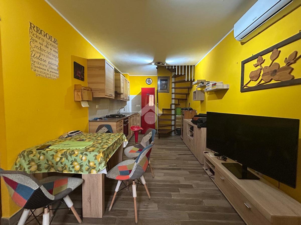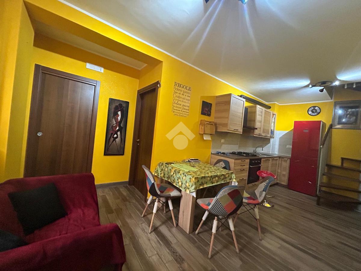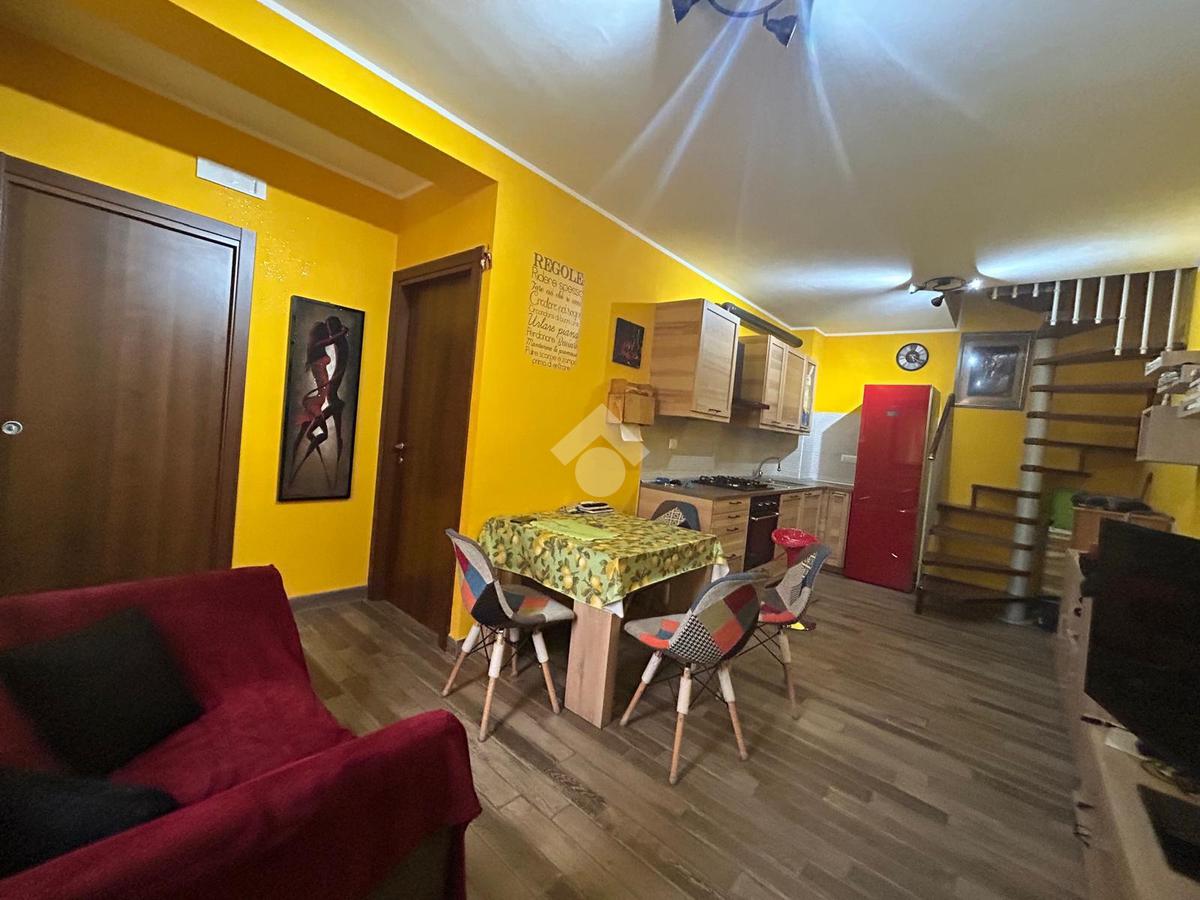 FRATTOCCHIE: In zona residenziale, un bilocale al primo piano disposto su due livelli, con due spazi esterni.