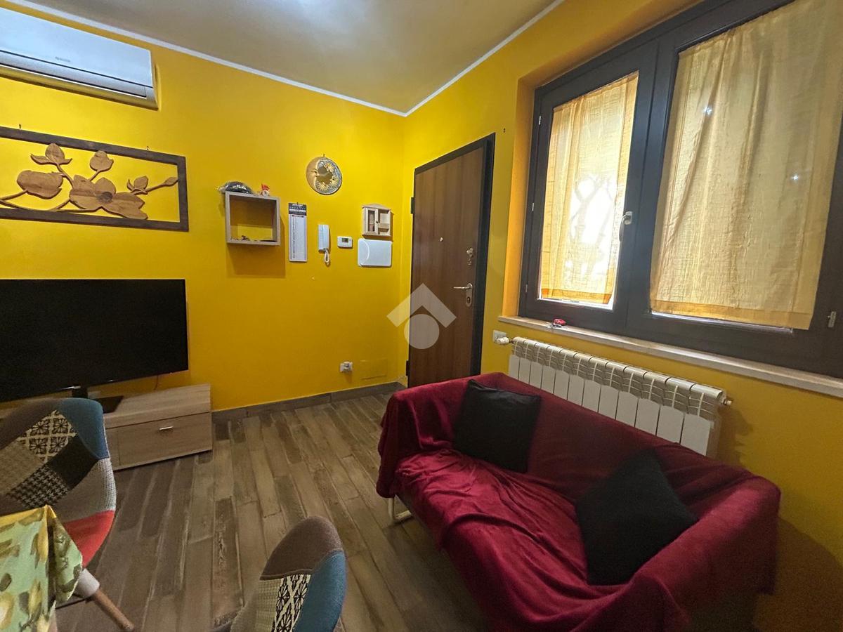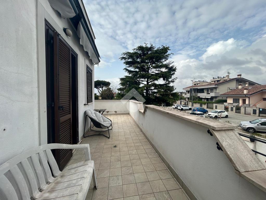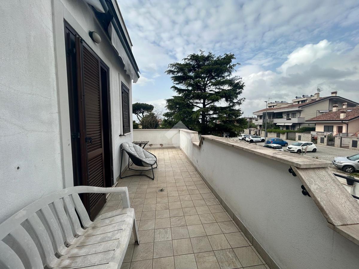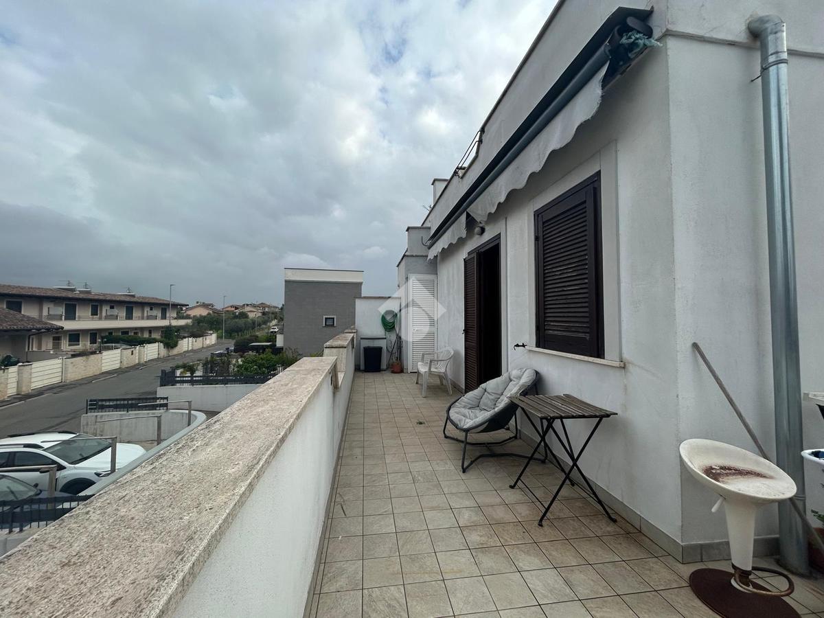 FRATTOCCHIE: In zona residenziale, un bilocale al primo piano disposto su due livelli, con due spazi esterni.