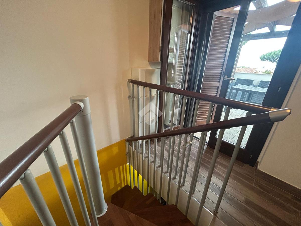 Dalla zona giorno, tramite una scala a chiocciola si raggiunge il livello superiore dove si ha accesso ad un ampio terrrazzo, ottimo per cene e pranzi all'esterno e per condividere del buon tempo con amici.
