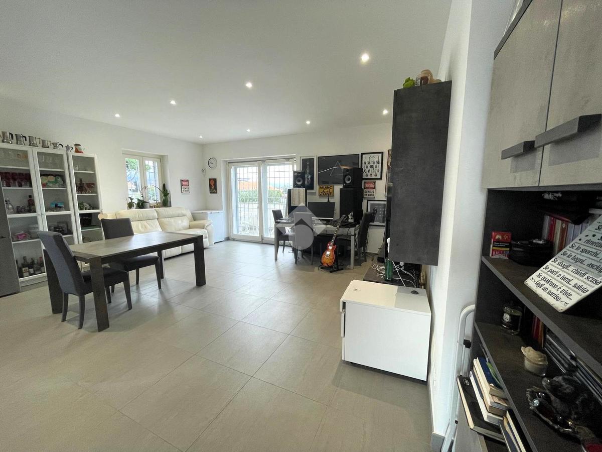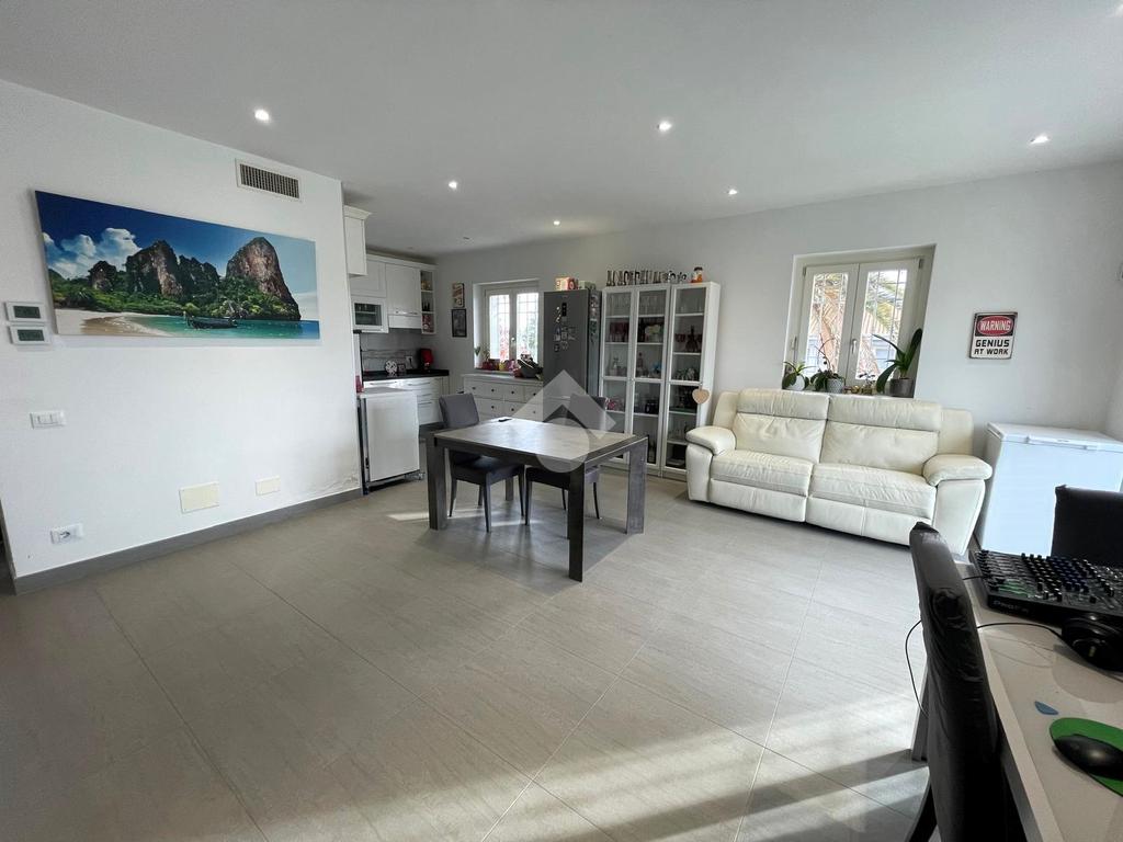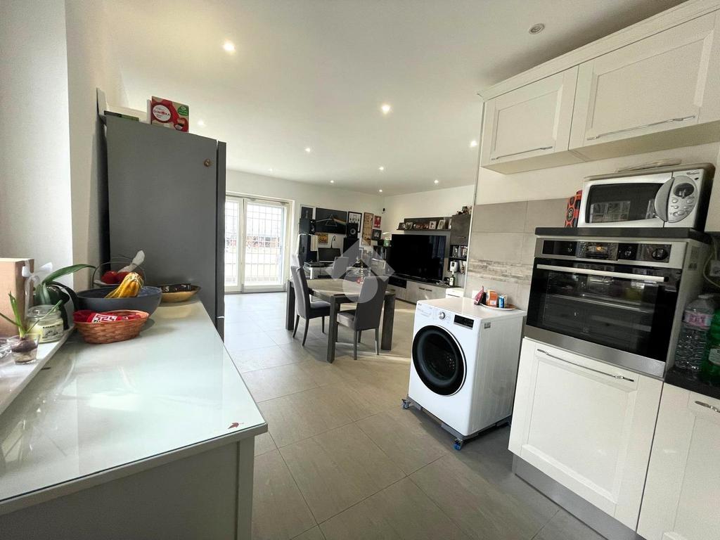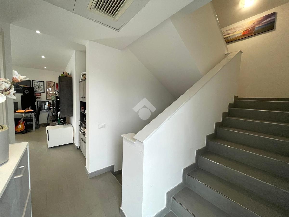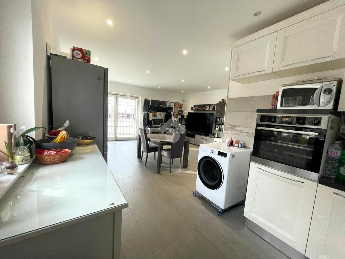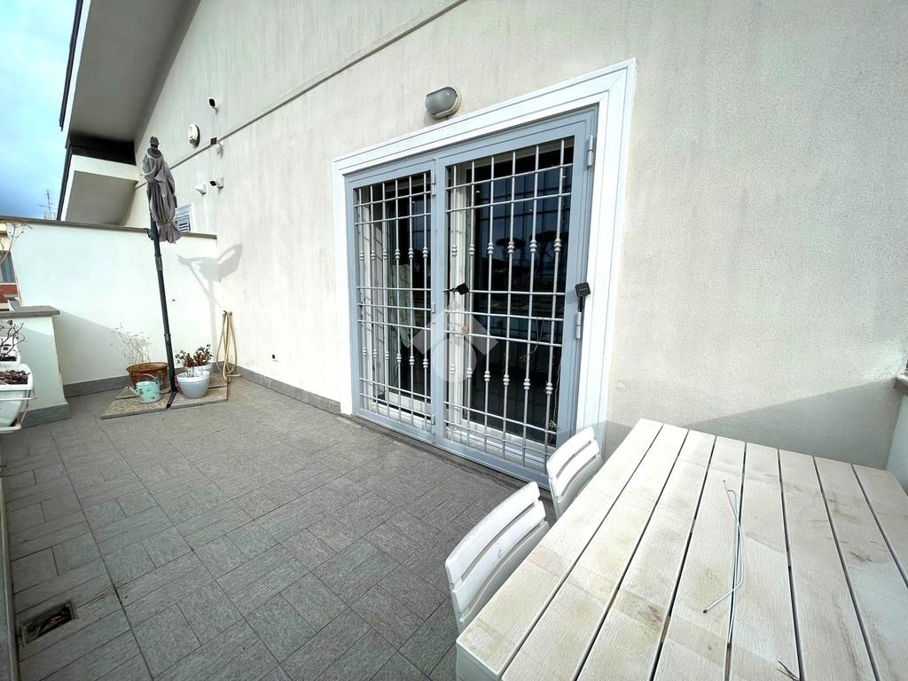 Primo livello: ampio e luminoso soggiorno con cucina a vista, tripla esposizione con affaccio su due terrazzi abitabili, bagno finestrato con box doccia.