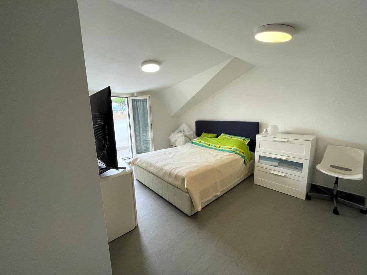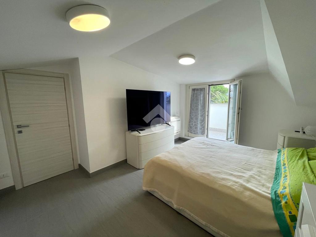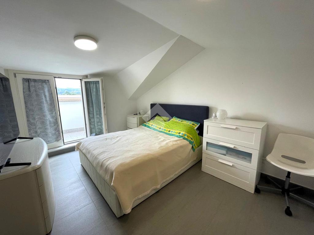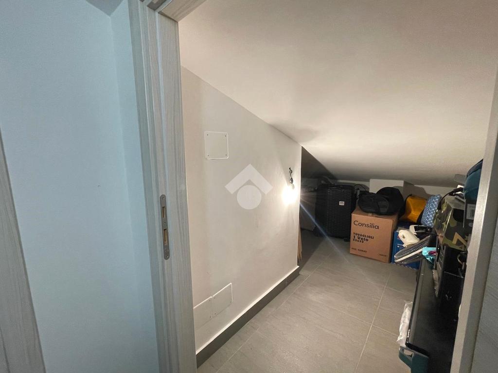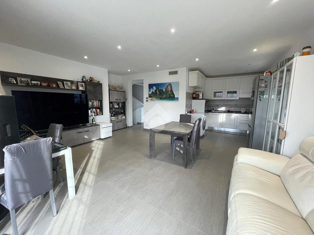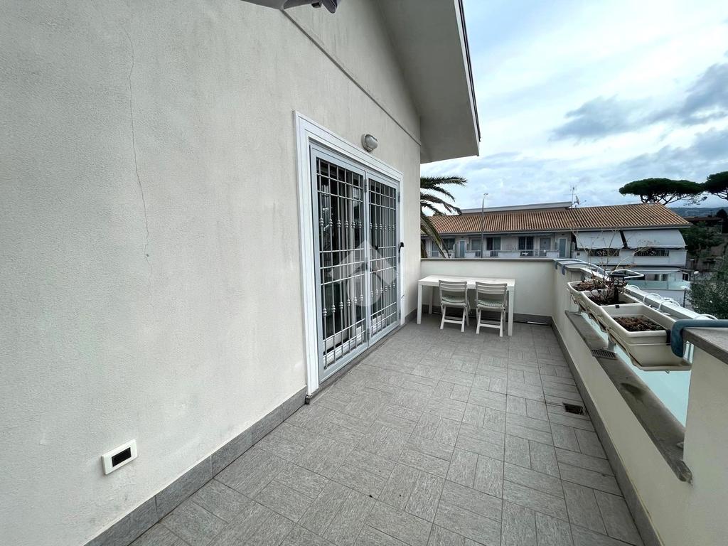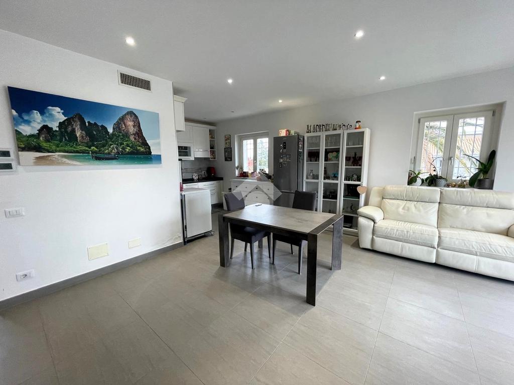 Primo livello: ampio e luminoso soggiorno con cucina a vista, tripla esposizione con affaccio su due terrazzi abitabili, bagno finestrato con box doccia.