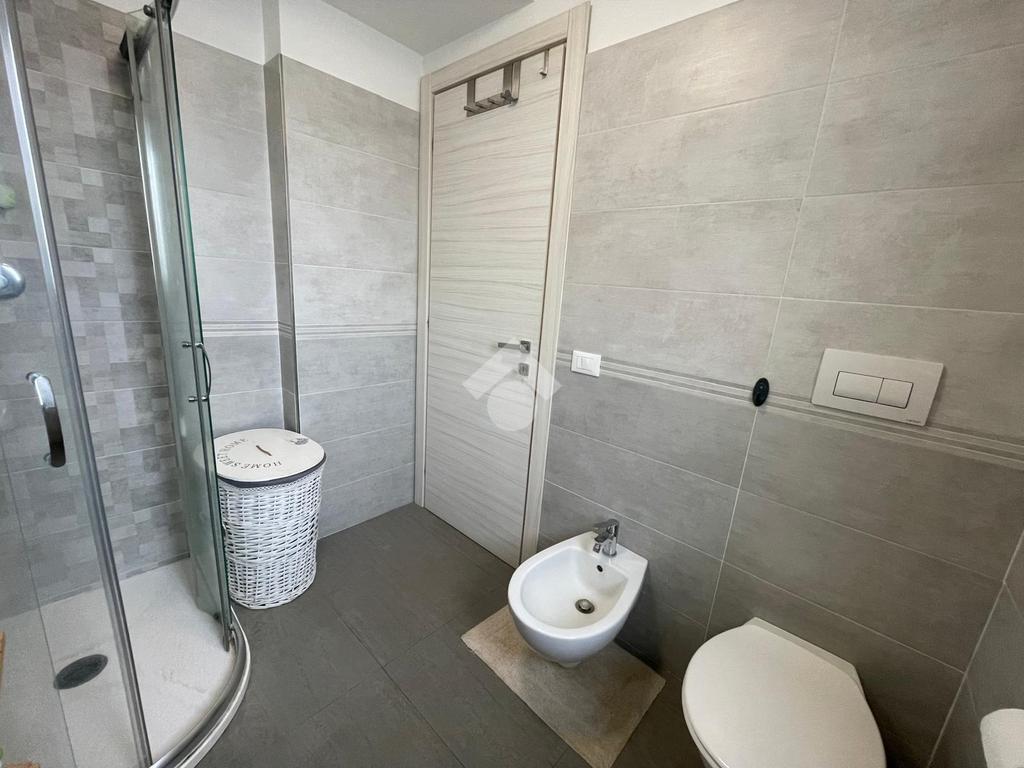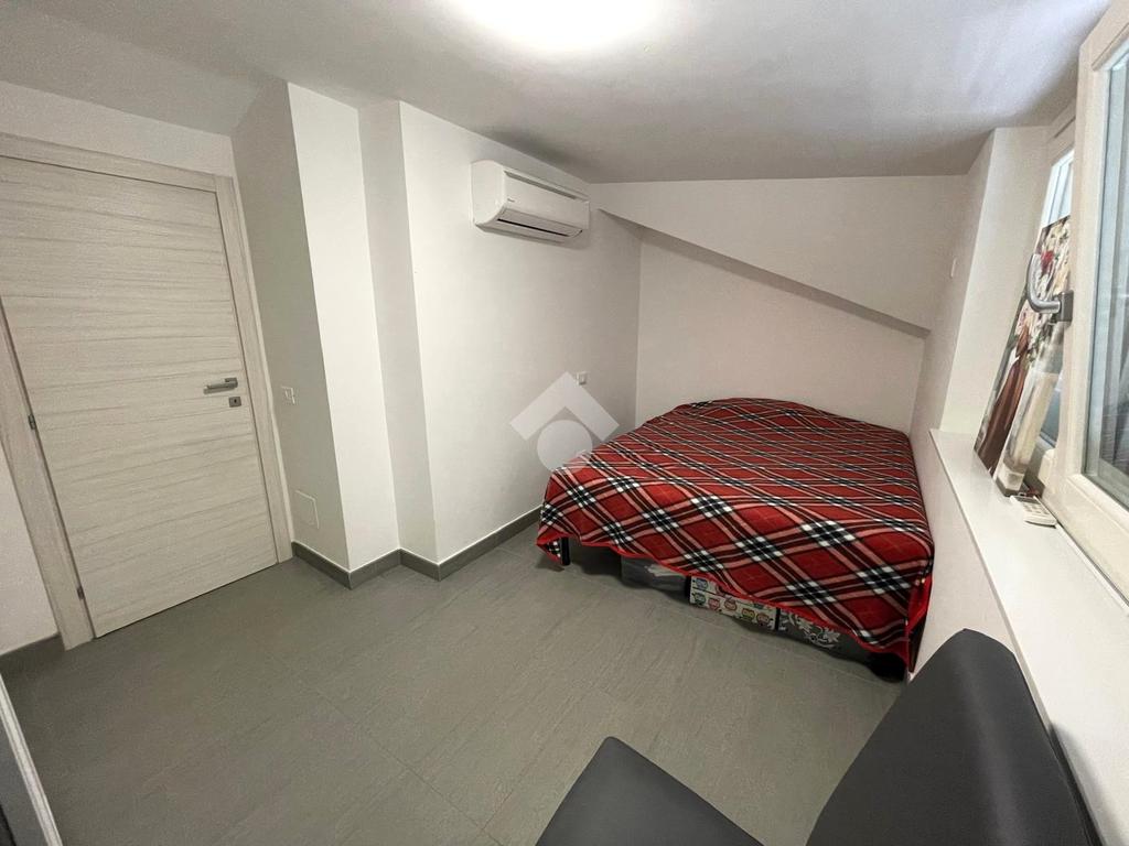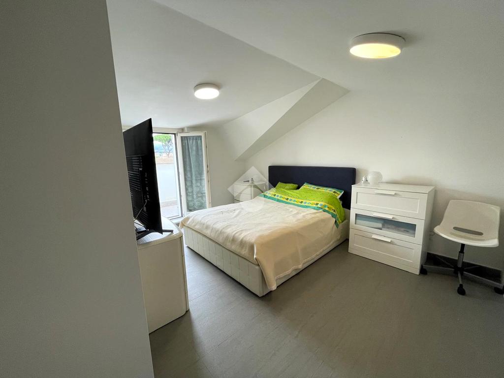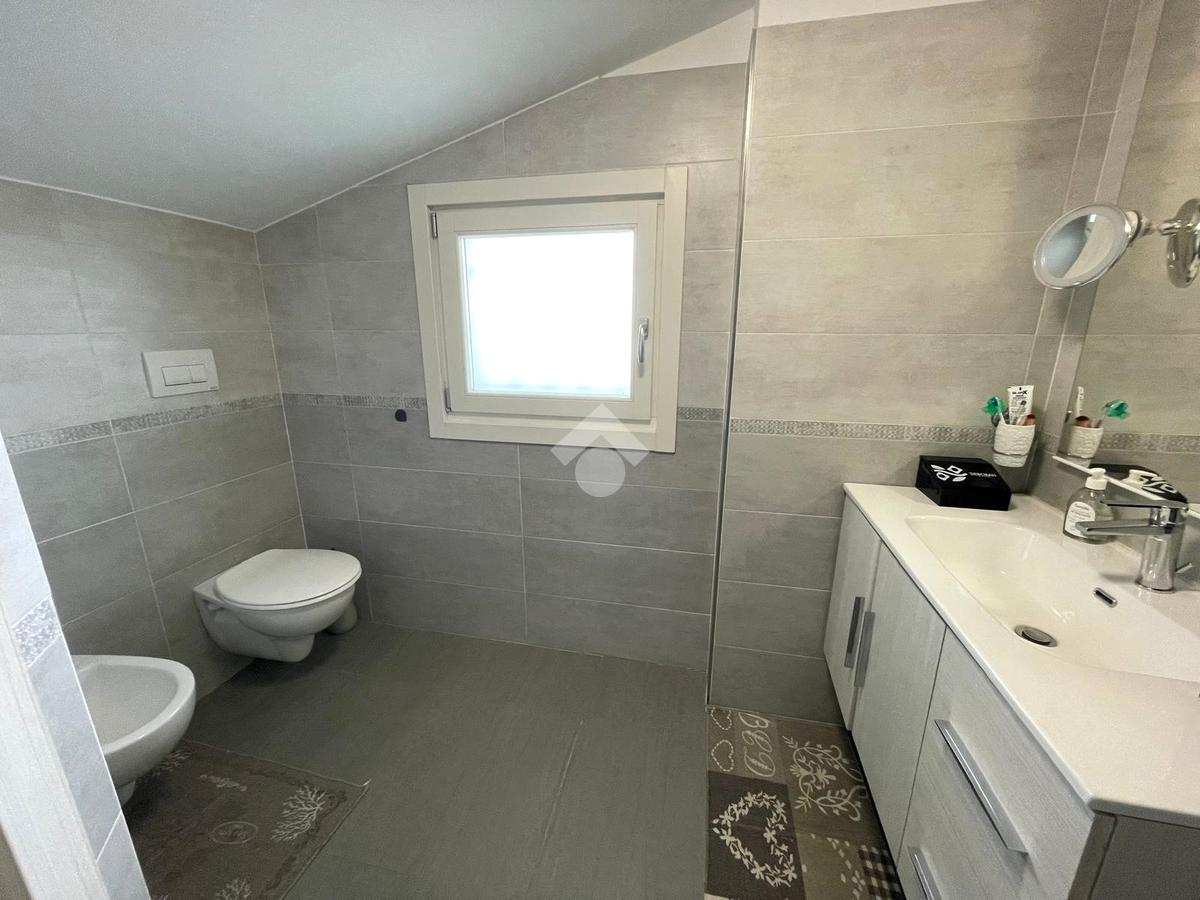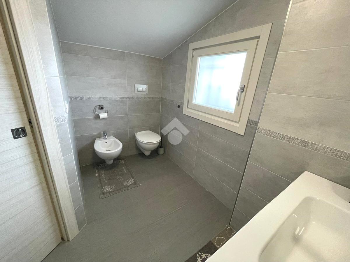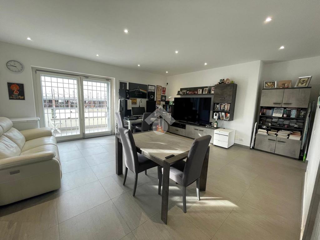 Primo livello: ampio e luminoso soggiorno con cucina a vista, tripla esposizione con affaccio su due terrazzi abitabili, bagno finestrato con box doccia.