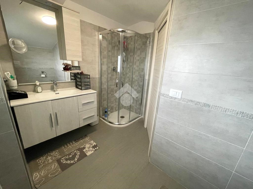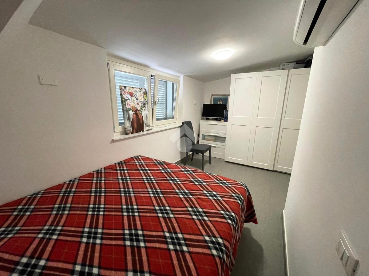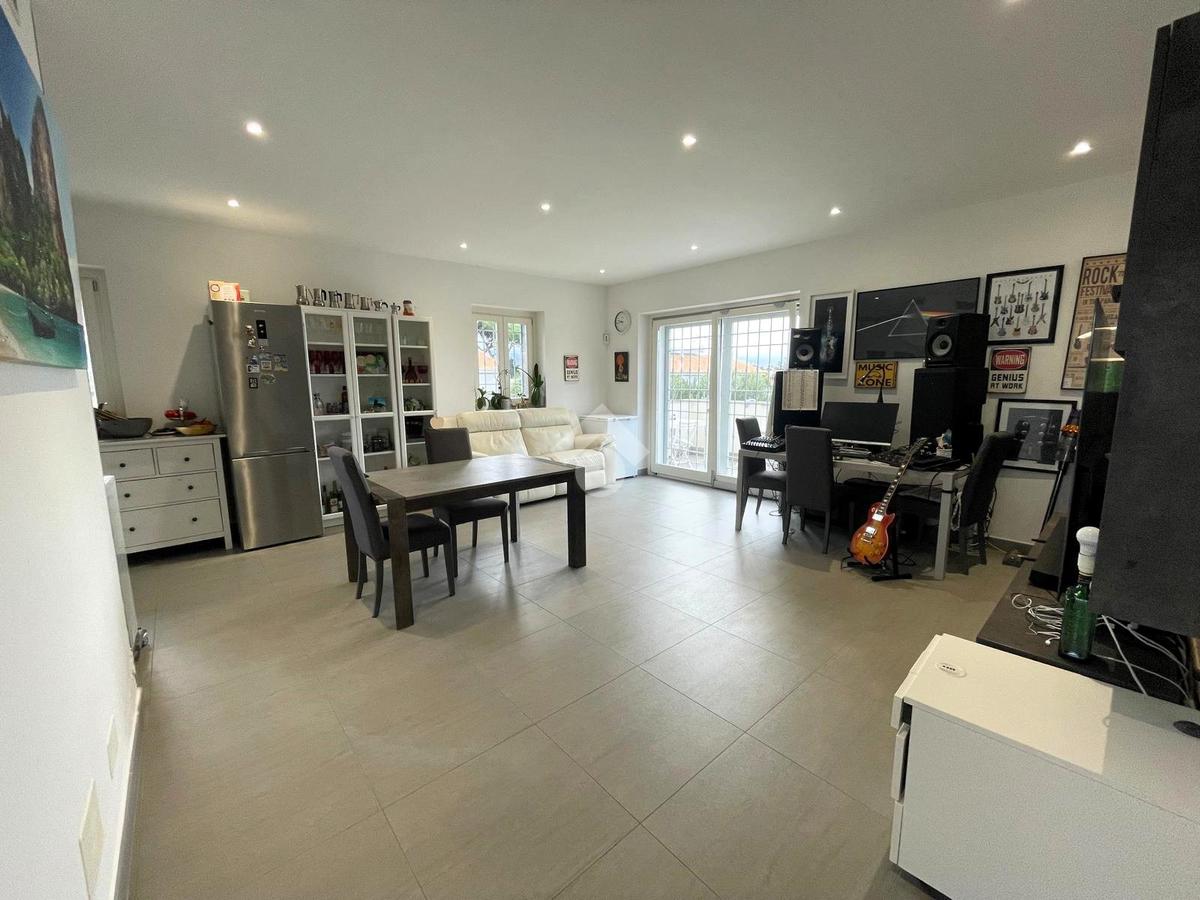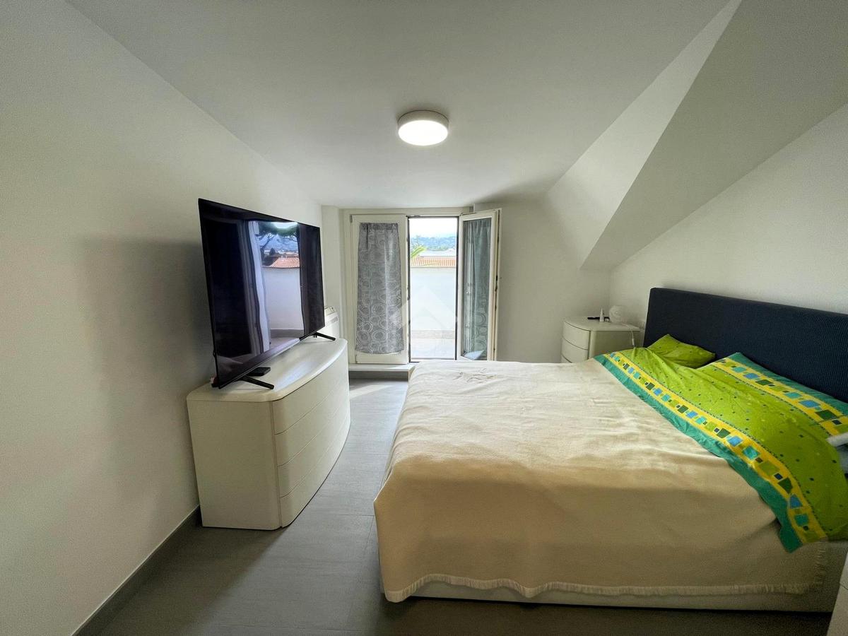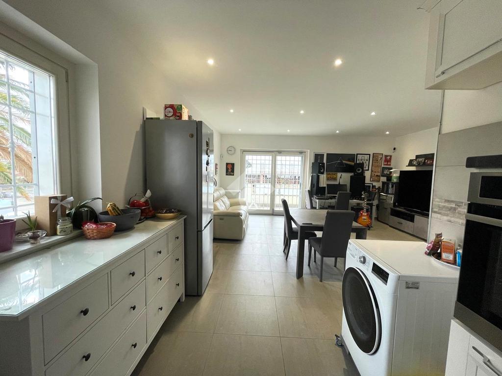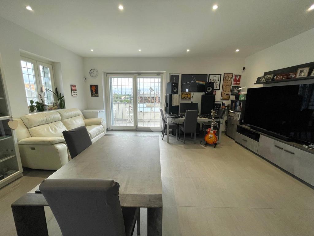 Primo livello: ampio e luminoso soggiorno con cucina a vista, tripla esposizione con affaccio su due terrazzi abitabili, bagno finestrato con box doccia.